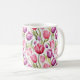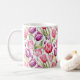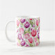 Esta clássica caneca de café branca é mostrada com uma adorável impressão de arte de tulipa. Personalize esta caneca ou comprar como está. Imagem licenciada