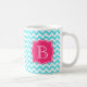 Caneca De Café Turquesa do ziguezague e monograma feito sob