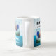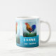 Uma caneca engraçada com uma turquesa e um design azul-claro com pinturas originais de um galo. Você pode substituir o galo por suas fotos personalizadas, se quiser. Excelente como presente para o seu aniversário ou só porque.