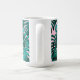 Outra caneca de na moda por JessicaAmber - pergunte sobre pedidos personalizados! Esta caneca de café personalizável apresenta grandes folhas da selva monstera em verde-turquesa, num fundo rosa-claro. Você pode alterar a cor de fundo. Faz um presente excelente para sua mãe ou esposa! Criado em 2 de maio de 2023 🌙 Para mais designs de folhagem tropical, visite a minha loja: Zazzle.com/store/DriftwoodAndDreams 🌙 Para pedidos personalizados, envie-me por correio eletrônico em jessicaamberartist+custom@gmail.com