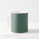 Esta caneca tem um design de arte de diamantes e meias-diamantes em ouro em um campo de turquesa. Como esta design, mas quer cores diferentes? Me mande mensagem.