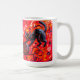 Bold illustration of a playful black cat with a yarn ball, split into two neon panels where one side glows green and the other burns red, creating a unique two-sided design that changes mood as you turn the mug. Graphic doodle lines, arrows, stars and swirls give this colorful cat artwork a modern street-art, pop-art energy that instantly catches the eye.