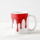 Caneca De Café Un liquide rouge vif coule le long d'un mug blanc.