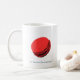 Uma imagem gráfica vibrante e impressionante de um macarrão de morango vermelho com texto em francês. Faça esses momentos de bebedeira especiais com seu cacau, chá ou café!