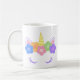 Cara estilizado do unicórnio com chifre, orelhas, pestanas, e flores