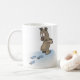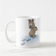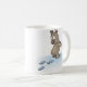 Este urso pequeno bonito muito confuso sobre algumas pegadas neste design cómico.