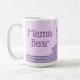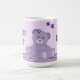Uma caneca bonita com mamã e ursinho bebê num fundo púrpura pálido.