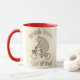 Uma caneca de café com a frase "Quebre a Rotina" em letras garrafais, combinada com um gráfico caprichoso de um urso andando de bicicleta, simbolizando uma fuga divertida e aventureira da vida cotidiana.