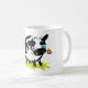 Uma vaca branca e negra adorável com uma flor na boca. Esta design parece realmente eficaz nestas Mug