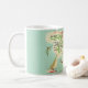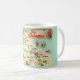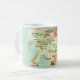 Um mapa colorido e colorido das Ilhas Bahama com maravilhosas pequenas ilustrações repostas em uma caneca de café.