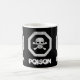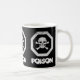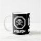 Um sinal de veneno suitadamente sinistro, motif, em branco, com um olhar gentil e estêncil sobre um fundo preto Repetido três vezes em volta da caneca com a palavra "Veneno" escrito embaixo.