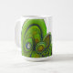 Uma sequência de formas concêntricas, verdes e circulares com gradações sutis e detalhes lineares, dispostas em escala decrescente contra um vazio negro.