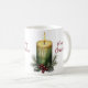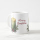 Enlouquece esta temporada de festas com uma caneca de café festiva com uma vela de Natal verde brilhante cercada por pinus e bagas vermelhas, aliada a uma mensagem animada de "Feliz Natal". Uma xícara perfeita para as manhãs de inverno, doação sazonal, cheia de calor e alegria.
