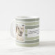 Personalize esta caneca listrada com duas de suas fotos favoritas de seus animais de estimação, amigos, crianças, e uma citação ou nome significativo. Banda dupla verde suave contra fundo branco.