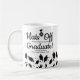 Celebrate your veterinary school grad with this awesome mug featuring graduation caps tossed in the air and fun text. Add your grad's name, school, degree, etc. The perfect coffee mug to use on the job, school or at home.