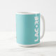 Esta caneca humorística alerta pessoas de que você toma café para sua proteção e apresenta o logotipo Lacore.