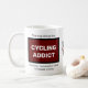 Viciado em ciclismo, design de caneca preta e vermelha. O esporte e o nome / inicial podem ser facilmente alterados para atender às suas necessidades usando o modelo fornecido.