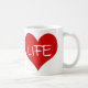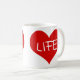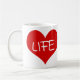 Um grande coração vermelho com um texto leve "LIFE".
