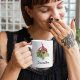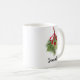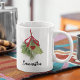 Esta design apresenta uma caneca de Natal para caligrafia, uma folha de folhagem botânica verde, uma amora vermelha de morango, pinheira de inverno com tendência para na moda, galinha de pinheiro, galho de pinheiros, salgadeiro de café de Natal, ideia de presente de natal, decoração natalícia, madeira elegante de natal, bebida de bebidas de Natal