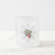 Christmas Snowflake And Shy Red Berry Frosted Glass Coffee Mug. A beautiful, delicate snowflake glistens in winter’s glow, gently resting on a bright red berry peeping through the frost. Sparkling softly, it whispers warmth and joy, Merry Christmas to all.