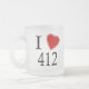 Eu amo os 412! É você de Pittsburgh, Pensilvânia? Você ama os 412? Ou você tem um amigo ou um membro da família que faça? Em caso afirmativo, isto "eu amo" a caneca que mostra que o amor para Pittsburgh é exatamente o presente que você está procurando! As características de design a letra "mim" na rotulação preta com um coração vermelho na parte superior e no "412" na rotulação preta na parte inferior.