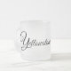 Esta caneca de vidro fosco é mostrada com uma impressão de arte de um lobo com texto Yellowstone. Personalize este item ou comprar como está.