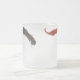 Esta caneca divertida tem dois bigodes semelhantes em um dos lados. Um é vermelho, outro é marrom escuro.