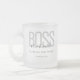 Uma caneca do BOSS com seu nome, o nome de sua empresa e sua data de estabelecimento. O design tem um esquema de cinza e cor preta. Simplesmente adicione sua informação, adicione esta caneca de vidro fosco ao seu carrinho, e beba seu café como o chefe que você é.