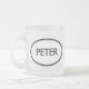 Verifique para fora esta caneca de Peter! É seu nome Peter? Ou você tem um marido, um namorado, um membro da família masculino ou um homem Peter nomeado amigo? Em caso afirmativo, esta "caneca do selo conhecido" é exatamente o presente que você está procurando! As características de design "Peter" na rotulação preta grande cercada por dois ovals, um fino e um grosso.