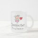 O design bonito do programador de computador tem uma figura menina da vara no rosa com coração vermelho grande. Presente do divertimento para algum programador.