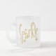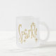 Sparkle escrito em letras de ouro brilhante e pontilhado com estrelas na caneca de vidro fosco.
