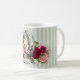 Versão colorida da aventura de Alice no País das Maravilhas O Chapéu Louco com florais e floresces adicionados, colocada sobre um antigo olhar rosa e fundo listrado aqua