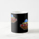 Um enxame de OVNIs vibrantes e luminescentes atravessa o vazio do espaço, decorado com cores azul, vermelha e marrom. Contra a extensão profunda do fundo do espaço negro.