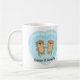 Apresente esta caneca para a sua outra metade para que ele ou ela saiba o seu amor por ele ou ela. Ele tem um par de desenhos animados segurando as mãos enquanto deitam as costas na água. As ondas de água a partir delas formam um contorno central à medida que se espalha para fora. O divertido trocadilho diz "Você é a minha metade da lontra". Personalize com os nomes do casal.