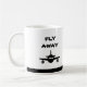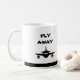 Mantenha a ideia da sua próxima fuga em sua mesa com este café ou uma caneca de chá "FLY AWAY" na sua mesa de trabalho.