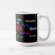 Coffee Mug com a palavra GRANDPA em vermelho-arrojado e várias outras palavras do avô em fontes coloridas em fundo preto.