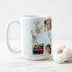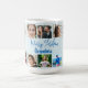 Uma simples colagem de fotos da família, desta caneca de Natal pessoal. Um veado de Natal também faz parte da design num fundo azul. Mude facilmente as fotos para as suas próprias imagens pessoais. O nome da vovó pode ser alterado para seu próprio título ou nome ou totalmente excluído.
