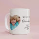 Celebre a vovó com esta design personalizada. Você pode adicionar duas fotos dos netos em quadros em forma de coração, personalizar a expressão para "Eu te amo" ou "Nós te amamos", e personalizar se ela é endereçada como avó, nana, abuela, etc. Você também pode adicionar os nomes de seus netos e o ano.