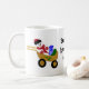 Pequeno boneco de neve rolando e balançando na sua carrinha.