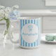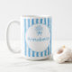 Caneca De Café Whimsical Blue White Stripe Preppy Monogram