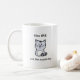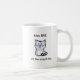 Uma caneca de café com sarcástico, engraçado, e um gatinho que claramente se declara a escolha preferida para afeto em relação ao cão.
