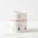 Celebrate the joy of the season with this Christmas Baby Shower mom to be mug! Designed with playful pink, gold, and green holiday trees on a soft cream background, this modern invitation adds a festive yet sweet touch to your celebration. The mix of retro fonts and whimsical tree illustrations creates a cheerful holiday vibe — perfect for winter baby showers or Christmas-themed gatherings honoring the mom-to-be.