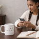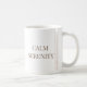 White Braid Serenity features the phrase CALM SERENITY in centered serif lettering, paired with vertical braid-inspired linework near the handle. The clean white base and minimal detailing make it a natural fit for desks, open shelving, or slow morning routines in neutral-focused spaces.