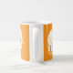 A white elephant on an orange mug.