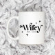 Mug com o texto "wifey" numa letra retrorreflectora elegante, juntamente com estrelas retrorreflectoras e o nome ou ano abaixo.