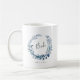 A caneca personalizada apresenta uma coroa botânica azul e branca com dentro de "noiva" inscrita em script escrito à mão. Personalize com sua data de casamento embaixo. Pegue um jogo para sua festa noiva inteira para uma foto perfeita de "se preparando" na manhã do casamento! Matando a Mãe da Noiva, Mãe da Noite, Bridesmaid e canecas de Madrinha de casamento disponíveis na nossa coleção do Azure Selvagem.