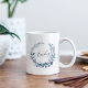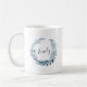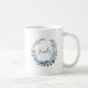 A caneca personalizada apresenta uma coroa botânica azul e branca com seu nome ou dentro inicial inscrito em script escrito à mão.