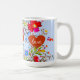 Um belo spray de flores silvestres boêmicas adoraria esta linda caneca. Este modelo mostrado em um fundo azul-piscadinho doce, mas você pode escolher entre um arco-íris de cores para torná-lo seu próprio fundo. Amor, amor - este texto é personalizável com a mensagem de sua escolha. Um design muito alegre e colorido que certamente vai iluminar qualquer dia! Faz um presente adorável e pessoal. Pegue uma em todas as cores!
