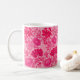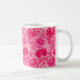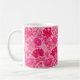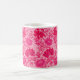 Caneca de café numa vintage William Morris, Art Nouveau, impressão floral de crisântemos estilizados, melhorada digitalmente e colorida, em tons de cor-de-rosa fuchsia profundo, azalea rosa e burgundy, num fundo rosa-claro