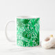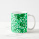 Caneca de café numa vintage, William Morris impressão floral de lírios estilizados e irlandeses, digitalmente melhorada e colorida, em tons de jade clara a escura verde sobre fundo branco